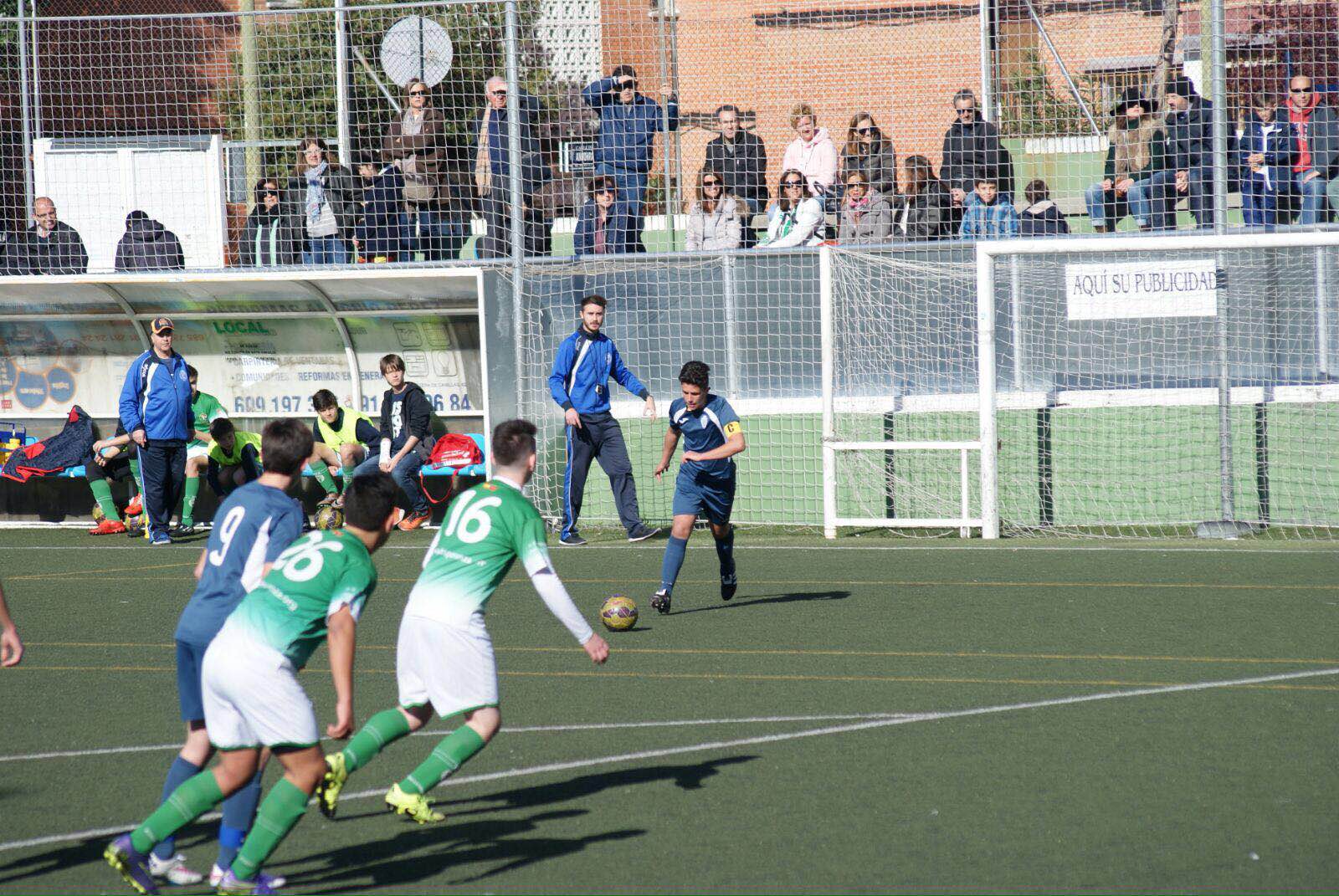 Buena mañana en el distrito de Hortaleza, aunque esta vez en un campo vecino, el de la A.D. Esperanza, donde los chicos de Miguel y Manu Espinosa se medirían a su Infantil “A”. Se iniciaba el partido y los visitantes se hacían notar en el campo, repeliendo todo el repertorio que quería mostrar el rival. Desde el principio el partido controlado, no con un muy buen juego pero si eficaz y seguro dadas las dimensiones del campo.